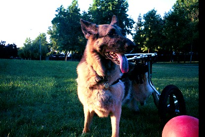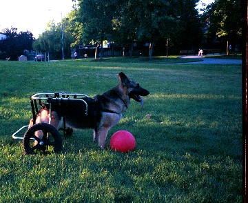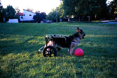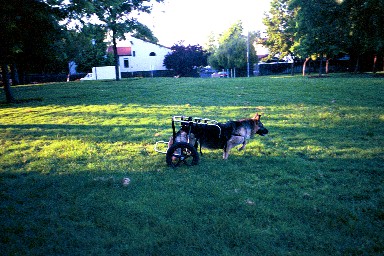 Lucy and her Doggon Wheels cart, June 2002